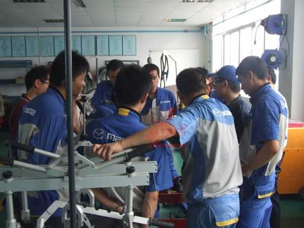 全國一汽馬自達(dá)各服務(wù)店都配備具有國際領(lǐng)先的鈑金維修工具設(shè)備,為了最大限度地利用這些高效率的工具設(shè)備,提升鈑金作業(yè)人員的技能及素養(yǎng),并為馬自達(dá)系統(tǒng)的售后服務(wù)體系打造一支鈑金維修技術(shù)過硬的隊伍。經(jīng)過一汽馬自達(dá)集團(tuán)服務(wù)部統(tǒng)籌與組織,來自全國各地一汽馬自達(dá)服務(wù)店D0910班的第十期培訓(xùn)學(xué)員,于2009年10月14日到珠海接受鈑金技術(shù)提升培訓(xùn)。