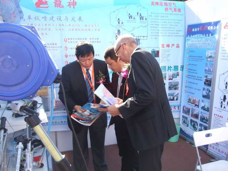 國(guó)外友人觀(guān)看龍神產(chǎn)品并與我司蘇副總交談