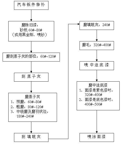 汽車修補(bǔ)干磨程序及砂紙的選擇 備注: 1、除舊漆時(shí)采用黑金剛配除漆除銹機(jī)能夠快速地除去平面、狹縫及凹凸不平表面的舊漆與銹漬;采用噴砂槍噴砂還可以很快地去除某些孔隙、縫隙或手都很難伸進(jìn)去的部位的舊漆與銹斑; 2、在磨填眼灰、中途底漆和尤其有邊角位、弧度位的表面時(shí)配打磨緩沖墊(置于圓盤砂紙和托盤之間)能夠使打磨作業(yè)更加順暢,并能獲得規(guī)則的表面質(zhì)量。 2007-08-25 12397