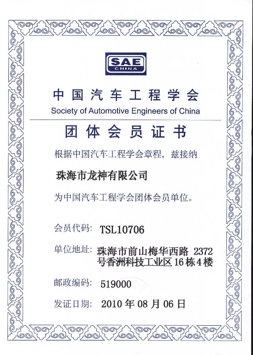 會員證書 會 員 證 書2020年廣東省汽車保修設(shè)備商會-監(jiān)事單位中國汽車工程學(xué)會團(tuán)體會員證書中國汽車維修行業(yè)協(xié)會會員證珠海市人民對外友好協(xié)會第二屆理事會團(tuán)體會員 2012-11-27 34892