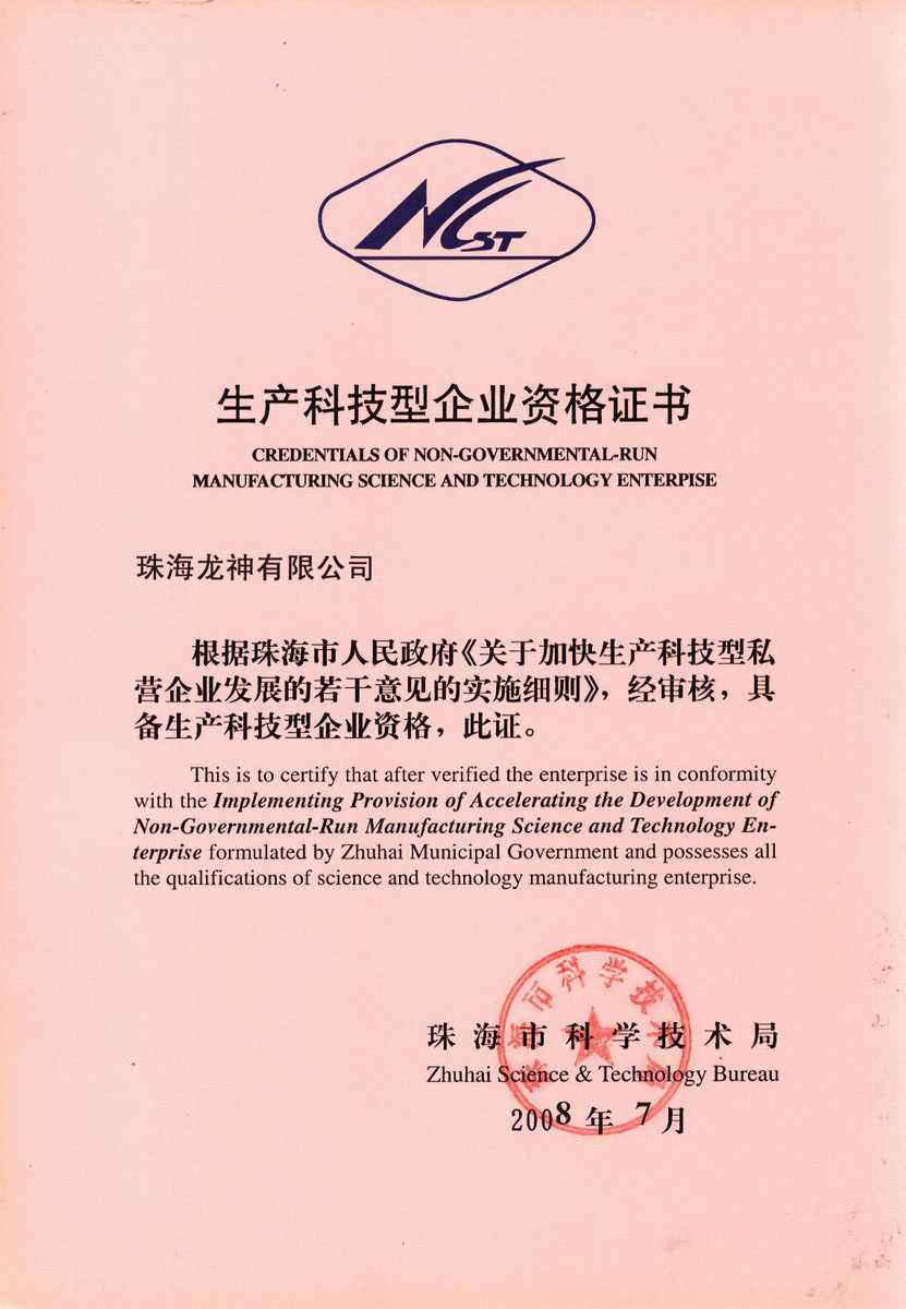資格證書 一、ISO9001:2008質量管理體系認證ISO9001:2008質量管理體系認證證書 二、廣東省民營科技企業(yè)資格證書民營科技企業(yè)資格證書 廣東省民營科技企業(yè) 三、珠海市生產(chǎn)科技企業(yè)證書生產(chǎn)科技型企業(yè) 珠海市生產(chǎn)科技型企業(yè) 認定證書 生產(chǎn)科技型企業(yè)資格證書(以上圖片均可點擊放大) 2012-11-27 37345